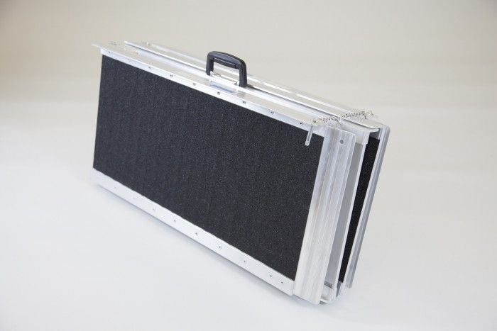 Ramp folds in half, both it's length and width - from 6ft upwards the ramps split in 2, SPLIT ramps which makes the ramps much easier to put in place and use.